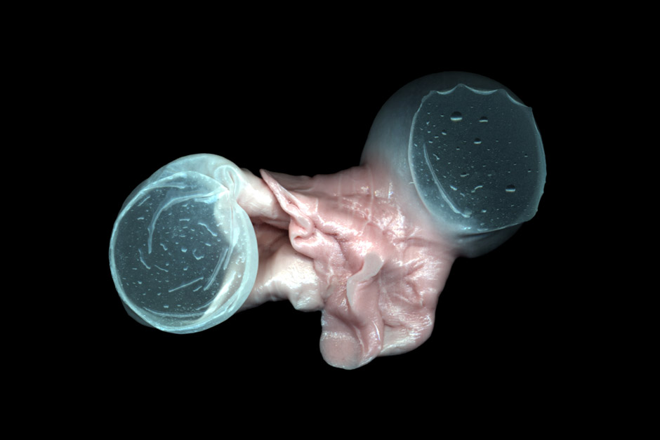 The object of sculpture is a chewing gum. The gum has been scanned leaning it directly on the glass pane of the scanner. In this way it has been possible to benefit from a pretty special visual angle upon reality. The scanner becomes indeed a special “camera”, so unable to take subjects that are not directly leaned on its “lens”. But for this reason itself it is capable to overturn a wide series of conceptual and physical orders of scale, so putting the observer in front of the dynamic flux of the stages of sensitivity and sense.